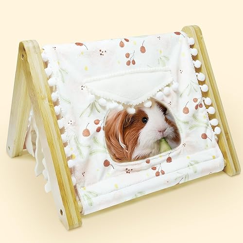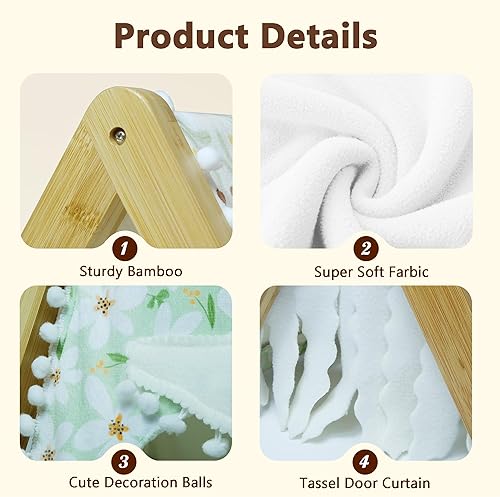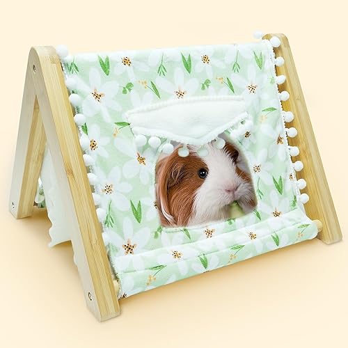 Easy to Disassemble and Clean:The exterior of the guinea pig house is made of lovely floral shaped shaker fabric, decorated with cute furballs, fixed with Velcro, can be quickly disassembled in 3 seconds, and supports machine washing without deformation. The unique bottomless design can be paired with disposable or reusable washable pee pads. Each time you clean, just lift it up easily for thorough cleaning, not easy to hide dirt, can extend the weekly use of the hideaway and keep the pet living environment clean and sanitary.