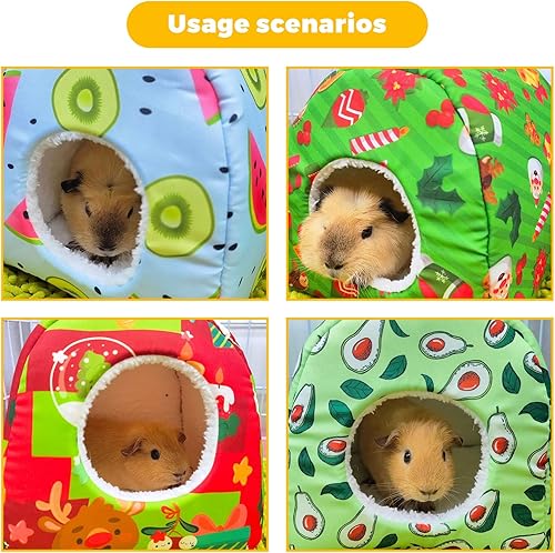 【Pet-Friendly Design (Safe & Colorful)】The colors make the small animal bed colorful and resistant to dirt, while the semi-enclosed nest provides pets with a sense of concealment and security—key for buyers looking for guinea pig hideout or hamster hideout that eases pet anxiety. This product can be used as sleeping beds (your pets will feel comfy while sleeping inside their guinea pig house), as a hide-way for their cage, or to hold your pet on your lap. It’s also the thickened version many owners search for to keep pets warm in cooler weather.