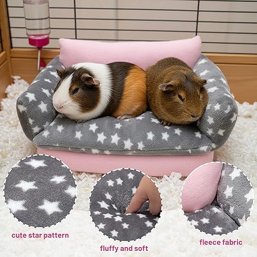 Fabric: This guinea pig sofa is crafted from fleece fabric and filled with soft material on the inside, create a gently conforming and warm embrace. This provides your pet with an immersive sense of security for ultimate relaxation. Additionally, tIn addition, the fleece material is not easily stained with hay and is easy to clean, making daily upkeep remarkably easy and diligently maintaining a clean and cozy home for your pet.