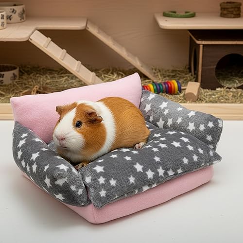 Multiple Ways to Use: This guinea pig sofa bed is crafted from plush and soft materials, featuring a main sofa body combined with a detachable cushion. It can be used together to create a full and cozy resting space or arranged separately with flexibility, meeting the diverse daily needs of your beloved pet and providing a more comfortable resting experience.