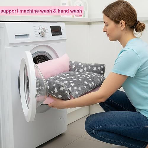 Stylish Design: This adorable small animal sofa bed, featuring an elegant gray star pattern creatively spliced with lovely pink fabric, strikes a nice balance between cuteness and nobility. It's not just a practical item but a warm, artistic piece that adorns your pet's home, adding a touch of warmth and style to their cozy house.