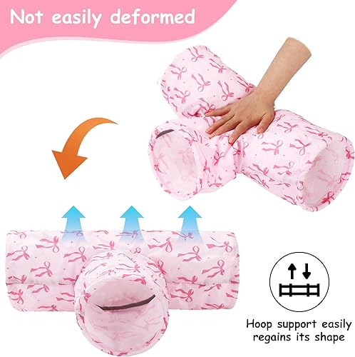 PINK BOW DESIGN: Features coquette bow pattern and colored in pink, vivid and delicate, to add a cute and stylish touch to the pet tunnel