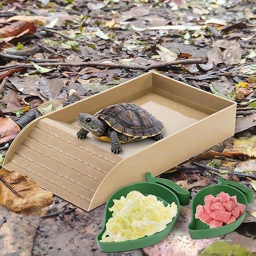 Non-slip Ramp: The wavy groove texture on the ramp can keep your turtle from slipping. Also, the ramp isn't too steep so your turtle can easily climb up and down. And the platform between the two slopes prevent tipping over.