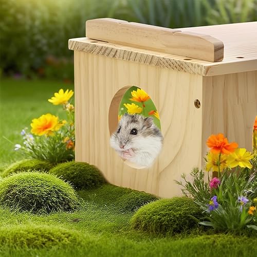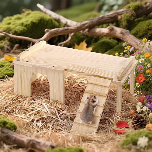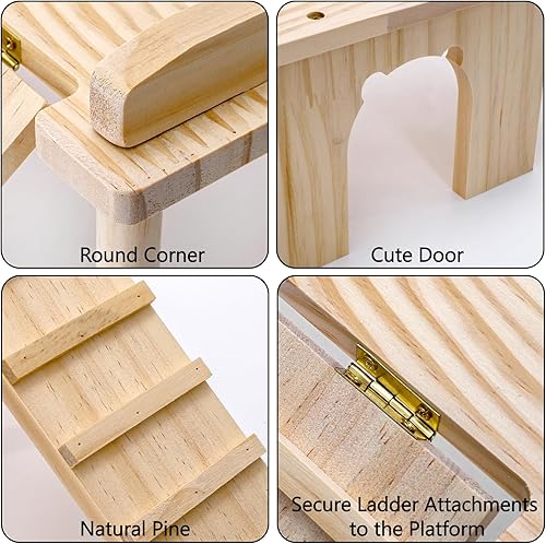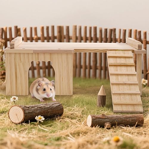 Natural & Safe Wood: Made from premium natural pine without any coating, non-toxic, ensuring a completely safe environment for your hamster to chew, play, and rest without any risk.