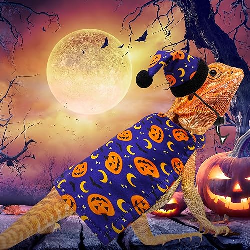 SIZE: This small animal Halloween costume set includes 1pc pet clothes and 1 pc hat. The pet clothes is suitable for small animals with neck circumference of 4.5"-7". The hat is adjustable and fits most lizards.