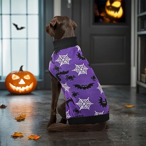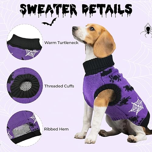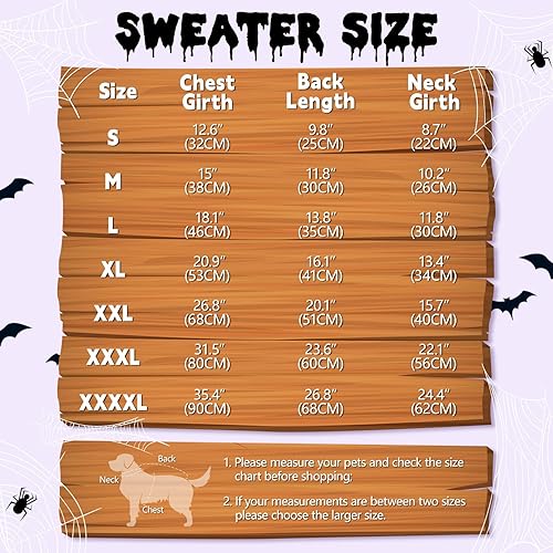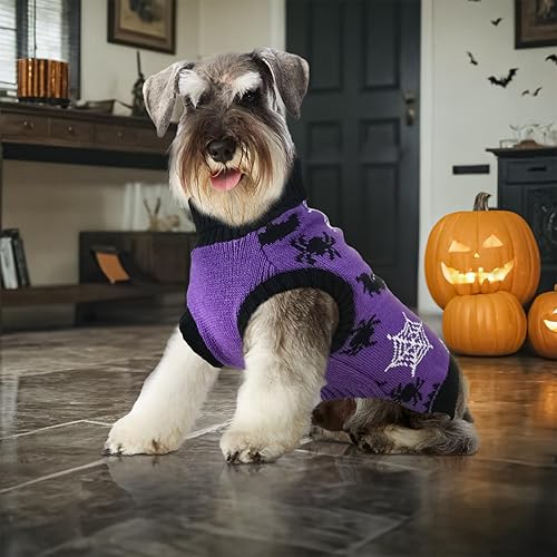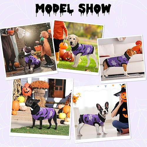 【Spooktacular Designs】Choose from three Halloween-inspired patterns: creepy spiders, eerie bats, and intricate spider webs to add a festive touch to your pet's wardrobe. CooShou dog Halloween sweater would be a warm gift in Halloween festival for your dog.