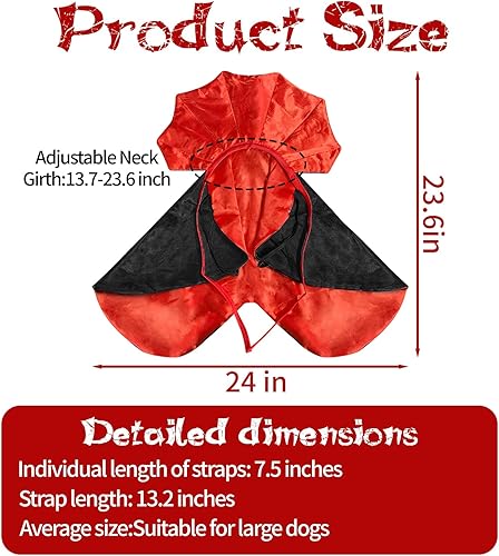 CAPTIVATING CAPE: Embrace the classic elegance of a red and black Halloween pet cape costume that accentuates your pet's cuteness and allure. This enchanting accessory will ensure your pet steals the show at every gathering, creating a captivating and mysterious ambiance for your Halloween festivities.