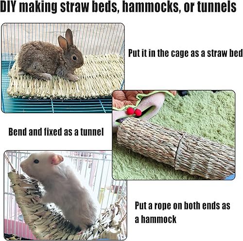 【DIY Mattress & Tunnel & Hammock】Enough multi-functional straw mat set, not just a mattress, you can also tie some rope to the end of the mat to make a hammock for your hamster cage, or roll it As a tunnel toy, your pet will like to spend hours exploring, foraging and chewing. It is very suitable for small animals such as guinea pigs, rabbits, chinchillas, hamsters, hedgehogs and squirrels