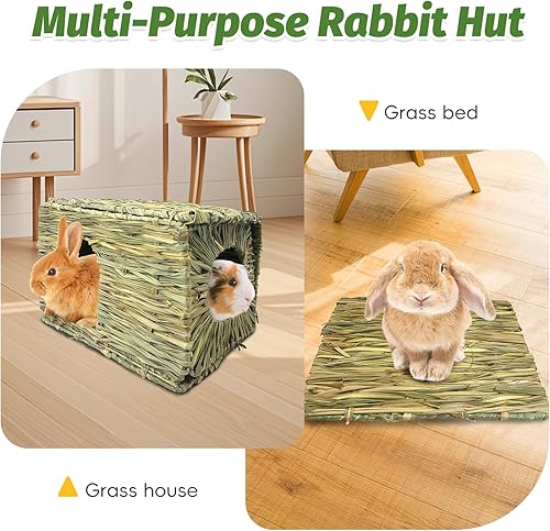 100% NATURAL HAND WOVEN SEAGRASS: Hand-woven hay hut,cool in summer and warm in winter.,safe and edible.it is structurally strong and can be moved at will.This natural seagrass bed contains plenty of fibre is great for bunny wearing down teeth