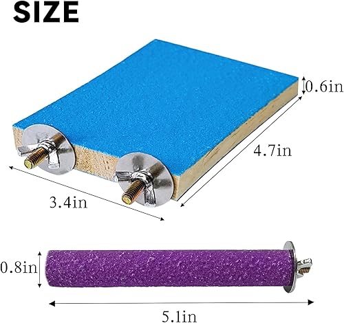 SIZE - The bird perch stand platform is 13*9cm and two types of boards allow your pet to choose freely. The length of the paw grinding stick is 14cm and the diameter is 1.5 cm. Good to decorate your bird cage. You can get 5 parrot perch toys with one purchase