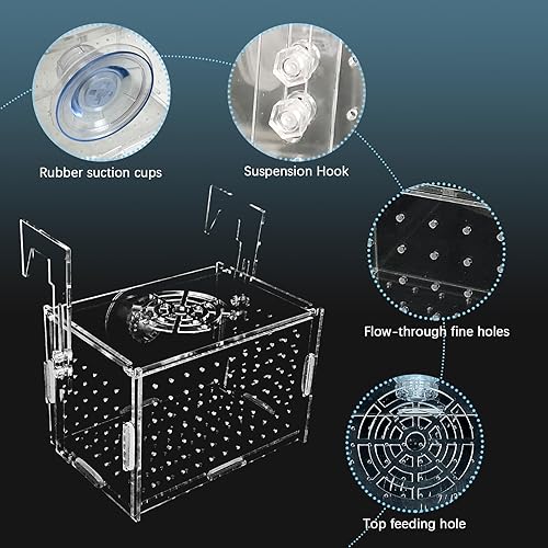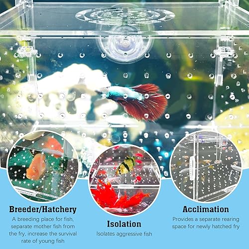 HIGH QUAILTY MATERIAL : Acrylic fish breeding box made of high quality acrylic transparent material,Safe and secure tank for breeding, isolating or acclimating fish,also it is easy to see your baby fish.It is sturdy, break-resistant and easy to clean