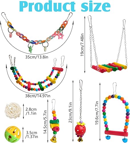 【100% SAFE MATERIALS & CHEWING】These pet bird cage toys are made of wood, colorful wood beads and hardware, durable, non-toxic, and sanitary and fun for birds to play. Bird swing toys for parakeets are safe to peck, chew, stand and play
