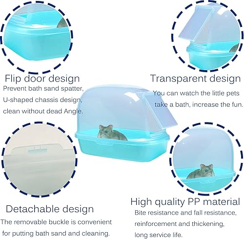 【Chinchilla Bathtub】Flip door design, prevent hamsters bath sand splash, bite resistant, not easy to turn over.Space enlargement design, small pets can move freely in the inside.Removable design, no dead corner, can be washed with water. Transparent design, you can watch the small pet bath in the side, increase interest