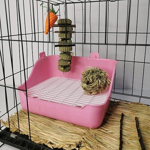 【Not easily knocked over】- The bunny litter box can be fixed to your cage with 2 hooks to hold the litter tray securely. So it is not easily knocked over by pets. If you find that you are not satisfied with our products, please contact us