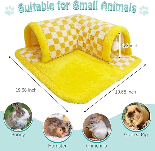 2 in 1 Multi-functional Rabbit Tunnel:Our bunny hideout is designed with a small animal bed and L-shaped hideout tunnel combination with an interactive plush hanging ball toy to add to your pet's exploration and playtime fun. Let your pet enjoy this bunny tunnel bed as it provides a cozy space for play and rest