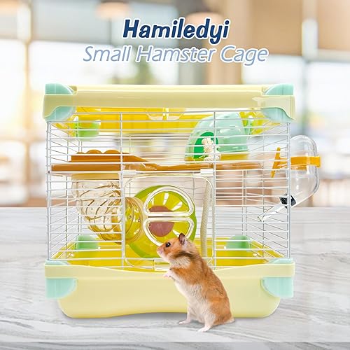 Product Description: The overall size of hamiledyi hamster cage kit is: 10.90 "L x 8.07 "W x 9.84 "H/27.67 x 20.50 x 24.99 cm. Due to manual measurement, please allow some error in the size of the small rat cage, which is normal. This cute hamster cage is very small, please check the size of this cage is suitable for your small pet before you buy. Our hamster cages and habitats are great presents for friends and children who love small animals