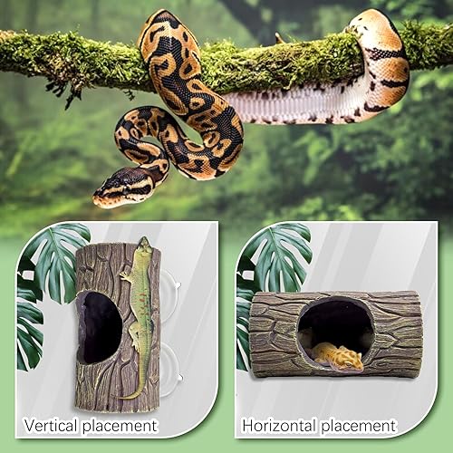 REALISTIC AND WELL-MADE : Made of premium safety resin, reptile hides is safe to place in both fresh and salt water, will not harm your fish, will not change shape or color over time, and is friendly to all aquariums and fish. The realistic trunk shape and texture allows the reptile to experience what it would be like to live in a forest, resembling a dry section of tree trunk to mimic a real life environment. This reptile tank accessories will be the ideal decoration for your aquarium, and it easily blends into a terrestrial or aquatic environment