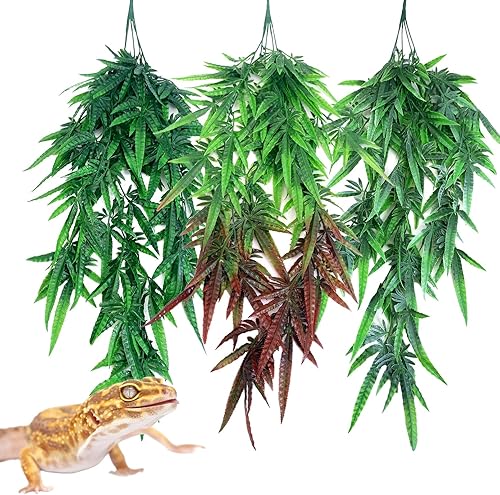 4 PCS Plants : The package contains 4 plants vines 33 inches each and come with 4 pieces suction cups. Plants is made with polyethylene plastic and soft silk leaves, clear texture and bright color, durable. Perfect for reptile decorations, reptile habitat, terrarium hanging, snake terrarium and aquarium fish tank decorations