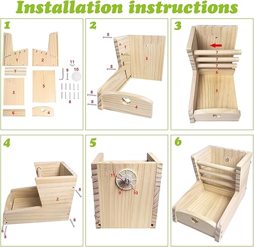 Easy To Install : The pet wooden hay feeder is removable for easy cleaning and finishing. This product contains the screws and screwdriver required for installation, after receiving the product, you need to install it yourself, the installation is very simple