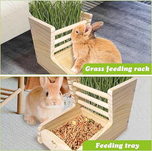 Special Design : When you buy a hay rack for rabbits, you buy a grass feeder and a feeding tray, which will help you save time in selecting and matching rabbits. Rabbit feeding box with hay feeder can insert carrots celery, parsley, fresh twigs, etc to increase the fun of pets foraging