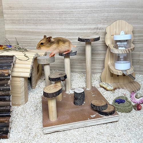 Versatile and fun: Hamster climbing platform kits are suitable for your cute pet daily training, play, climb, chew, exercise. Let our beloved hamster do more exercise to make him healthier. Hamster toy sets provide pets with a place to hide, climb and play, satisfying their play instincts and reducing their loneliness and boredom. For small pets entertainment, stress relief, teeth grinding. Give our little rodents a place to play and exercise!