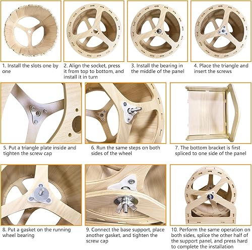 Safe And Sturdy Structure: The hamster wheel is thickened and widened wooden base provides a reliable and stable support for the movement wheels. The risk of inversion is reduced. The base is a wooden structure, which only requires simple assembly. Mortise and tenon structure, nailing free design, simple assembly