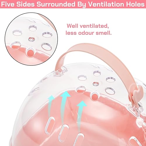 Breathable: The ventilation design at the top of hamster carrier allows your little one to feel breathable and enjoy life inside, and you can easily keep an eye on them through the transparent cover.