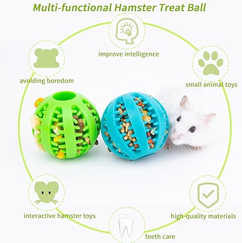 Fun Hamster Treat Toy Balls: Guinea pig treat puzzle is made of high quality rubber, safe and friendly, soft and good elasticity, great for hamster teeth chewing and cleaning, hamster treat dispenser to keep them busy, interactive and playing, Provide Endless fun