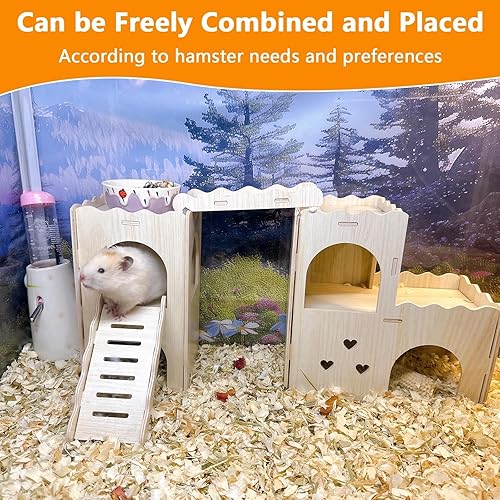 【Easy to Clean and Maintain】Our hamster hideout is designed to be bottomless, avoiding urine adsorption at the bottom, making it effortless to clean up bed debris, ensuring that your pet playground remains fresh, clean, odor-free and requires minimal maintenance. Create a cleaner hamster playground for your hamsters