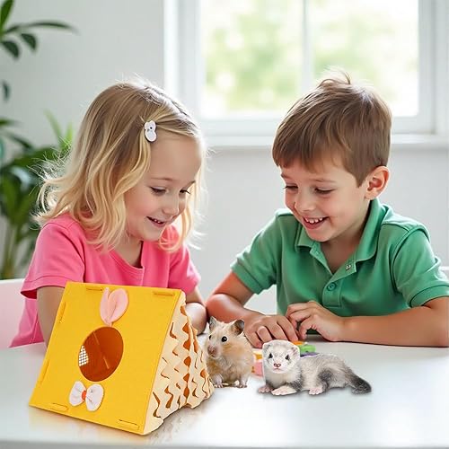 Easy-Clean & Vibrant: Sunny yellow felt resists stains; simply wipe with damp cloth. Reinforced mesh withstands curious nibbling