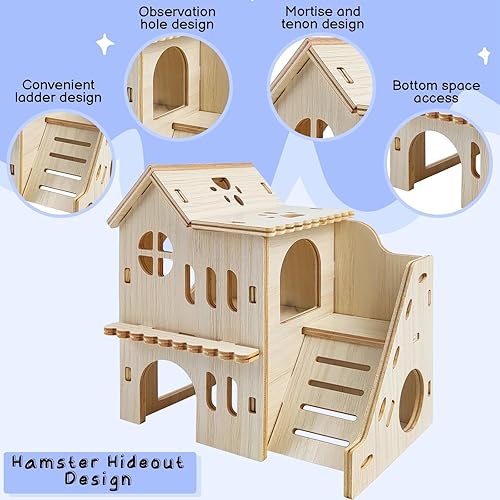Double-Decker Play Zone for Young Pets: Unique two-story design with climbing ladder creates dynamic vertical space. Encourages natural climbing instincts in dwarf hamsters, gerbils, baby mice, and other small rodents, providing separate areas for play, rest, and exploration.