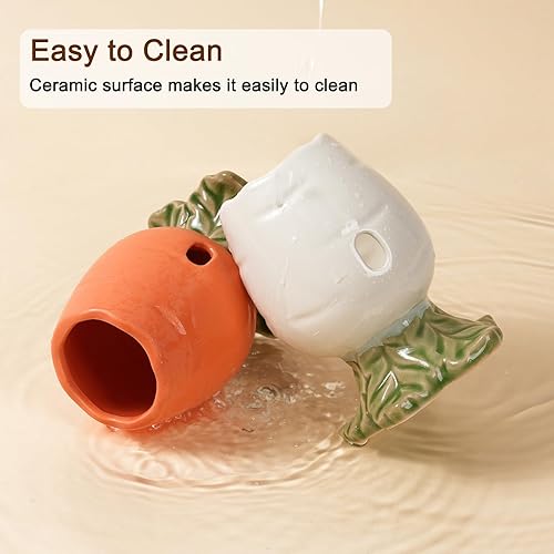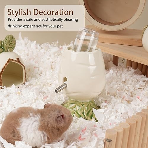 Carrot Design To Decor --- The ceramic hamster water stand looks like a carrot, bringing interesting viewing effects to the hamster cage. Bright, lifelike carrot-shaped water bottle adds a playful, natural vibe to your hamster's habitat. Perfect for themed cages or enriching your pet’s environment