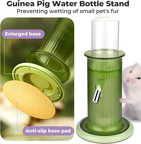 Hamster Water Bottle No Drip – 4 oz Guinea Pig Water Bottle for Glass Tank with Stand (Green)(Green)