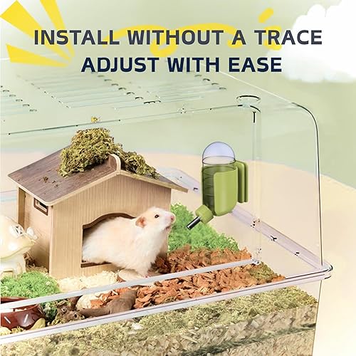 Space Saving: Suspended in mid-air to prevent tipping, it facilitates easy drinking for small pets like hamsters, mice, gerbils, and rats, while protecting their spines. Keeps bedding dry and maximizes the usable space within the terrarium or cage.