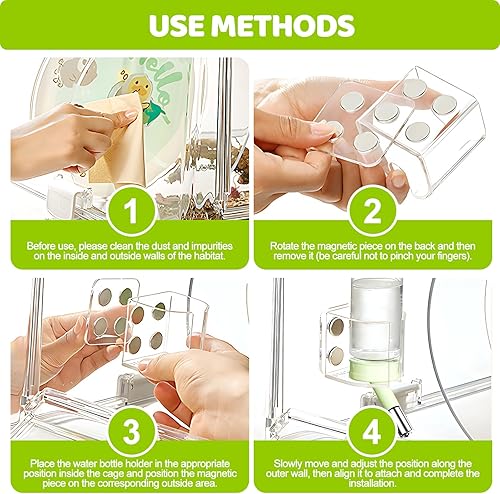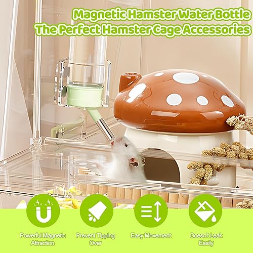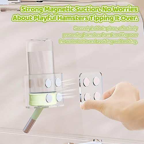 Stable anti-turning: Hamster water bottle for glass tank with strong magnetic suction, firmly absorb not fall, effectively prevent naughty hamsters knocked over the bottle, no longer wet bedding.