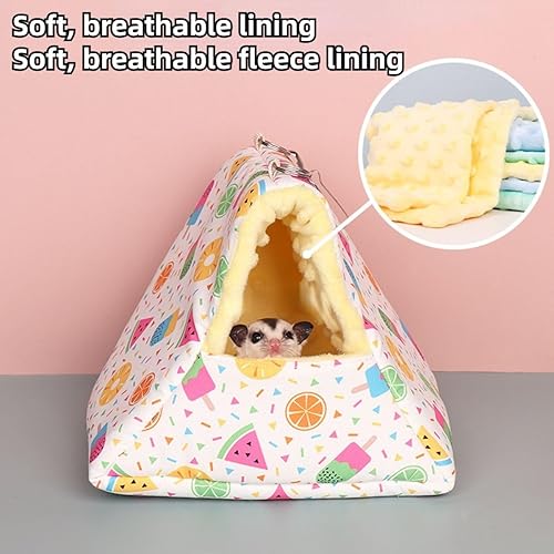 The size is Approx 5.51"L x 7.09"W x 5.91"H.Wrapped design entrance brings Sense of security. It is a lovely pouch for your sensitive small pets to rest, play, hideout and sleeping. If you love your small animal, you may need to give them a safe shelter. you can also give this sleeping bag to your small pets, even if you already have a cage, you need this house bed to make them relax.