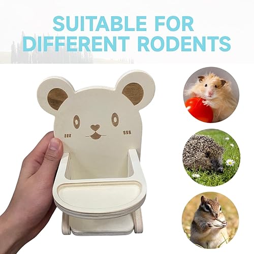 Natural Wood and Non-Toxic - Hamster chair toys are made of high-quality 100% natural wood, selected first-class wood, natural sun drying.The surface is smooth and durable which is more comfortable to use. Safe and sturdy for you to put food, durable for the pet to exercise the teeth.In order to avoid getting mouldy, please keep cleaning by wet cloth and dry in a ventilated place.