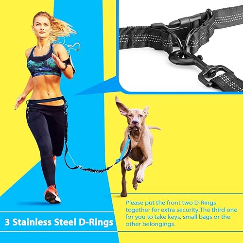 HANDS FREE DOG LEASH: Waist belt wearing makes your hands free with your pets. The Durable adjustable waist belt can adjust from 27'' to 55'' which fit for all people. You can freely enjoy your phone, drinking, running and Biking with your dogs