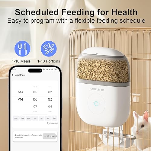 App-Controlled Smart Feeding: Using the companion app, schedule up to 10 meals daily with precise portion control (1–20 servings per meal) or feed manually on demand. This automatic bunny feeder helps establish a healthy feeding routine and prevents overeating, making it ideal for rabbits, guinea pigs, and small pets with sensitive diets