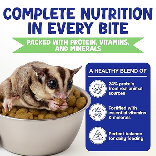 COMPLETE DAILY NUTRITION: This pelleted food gives your sugar glider everything they need each day - animal protein from chicken and fish meal, and essential vitamins. No more guessing what to feed them or worrying about missing nutrients. Just serve this alongside fresh fruit and vegetables. Works great for gliders of any age once they're weaned from their mothers. Ideal for exotic pets who need specialized small animal food that supports their natural nocturnal lifestyle and energy needs.