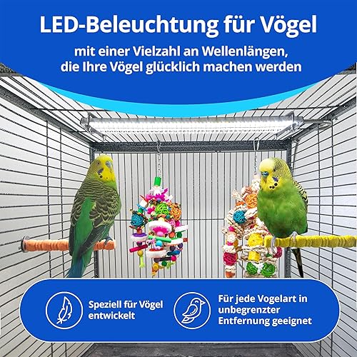 ALLOWS YOU TO SIMULATE NATURAL PHOTOPERIOD: In nature, birds experience a cycle of light. This natural photoperiod triggers and regulates hormones in birds. Our scientifically developed birdcage light mimics these photoperiods by using consistent lighting intervals when connected to a timer for happier birds.