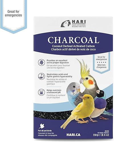 Hari Bird Charcoal, Coconut Derived Activated Charcoal, Aid in Digestion and Eliminate Toxins, Hagen Supplement for All Birds, 8.11 oz