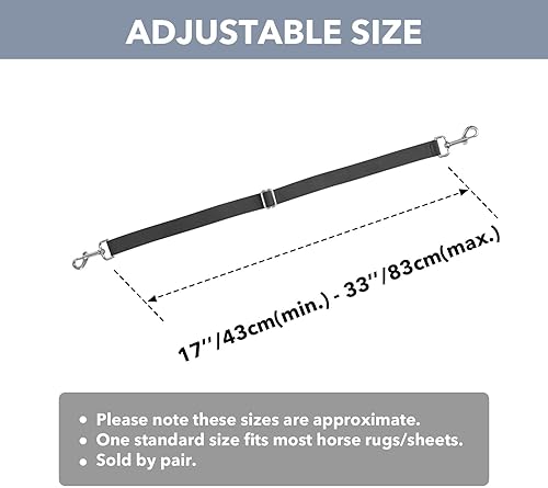 HEAVY-DUTY SWIVEL SNAPS: Heavy-duty swivel snaps on both ends ensure long-term use, and a nice fitting to your existing horse rug’s D ring.