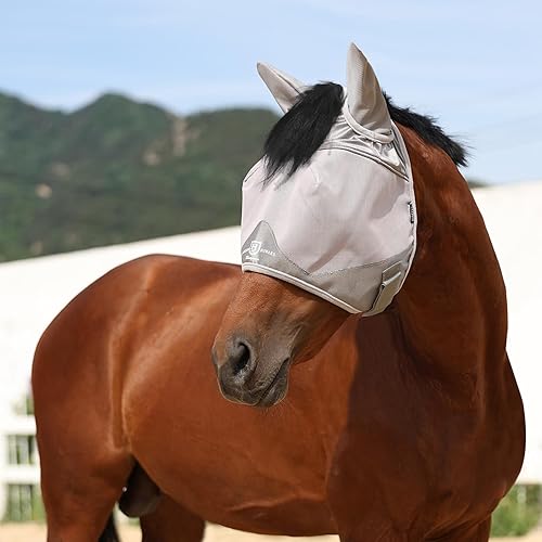 SECURE FIT OVER THE BRIDLE: Easily and quickly attaches over the bridle. One adjustable touch-and-go tape under the jaw ensures a safe closure for a proper fit while allowing the mask to stay in place.
