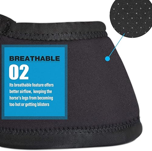 DENSE SHOCK-ABSORBING BUILD: Providing all-around, extraordinary protection and comfort for the horse’s hoof, cornet band, and bulbs of the heel. Shock-absorbing neoprene helps protect critical, sensitive areas of the foot against impact from overstretching.