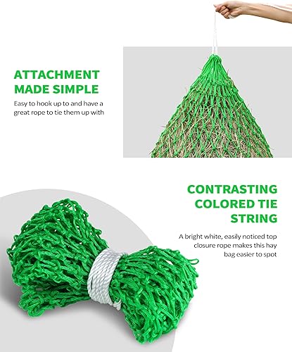 Contrasting Colored Tie String: A bright white, easily noticed top closure rope makes this hay bag easier to spot, which is a bonus for eased loading and unloading.