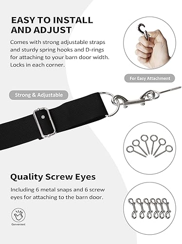 Easy Installation & Adjustability: Equipped with strong, adjustable straps and sturdy spring hooks, this stall guard attaches effortlessly to barn doors of various widths. It locks securely at each corner for a snug fit.