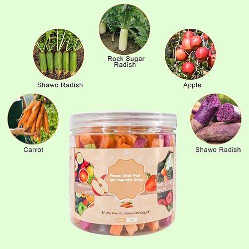 Natural health: small pets such as chinchillas, hamsters, and rabbits enjoy eating fresh fruits and vegetables. However, fresh fruits and vegetables have a short shelf life and are difficult to meet people's needs. To solve this problem, we have launched a freeze-dried fruit and vegetable bar that is rich in nutrients and tastes delicious. It perfectly retains the nutrient essence of fruits and vegetables, making healthy eating more convenient.
