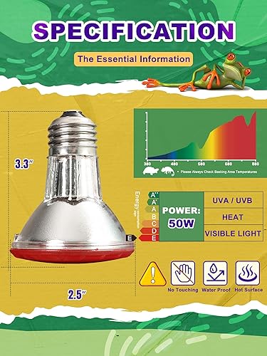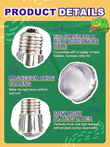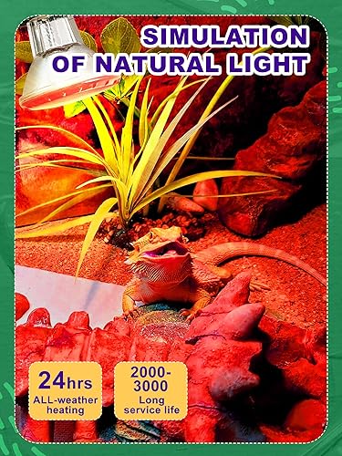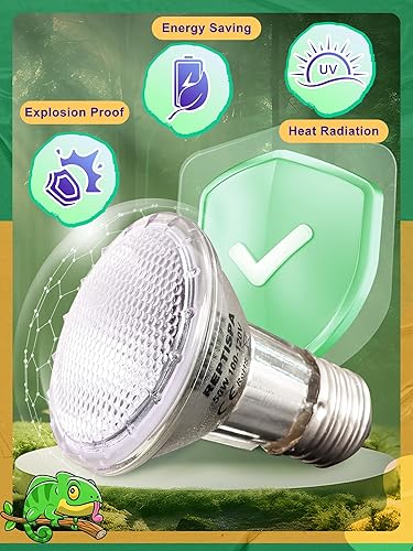 STRONGER DURABILITY AND COMPATIBILITY: REPTISPA heat lamp bulb's long-lasting carbon fiber filament extends its working life-span. This reptile heating bulb is suitable for different reptile enclosures. It is ideal for various reptiles and amphibians, such as lizards, frogs, snakes, bearded dragons, turtles, leopard geckos, chameleons, iguanas, and so on. The bulb is easy to use, by simply screwing it into any E26 sockets.