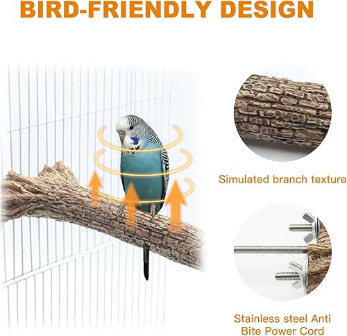 HEALTHY FOR BIRDS - Our bird perch heater simulates the shape of tree branches to create a natural environment for your bird, with tree branch texture to prevent slipping. The unique shape reduces pressure sores and foot cramping, Reduce the avian pressure to keep them healthy and lively. Safe standard Stainless steel Anti Bite Power Cord can prevent the birds from pecking to the greatest extent. non-toxic & bite/scratch resistant.